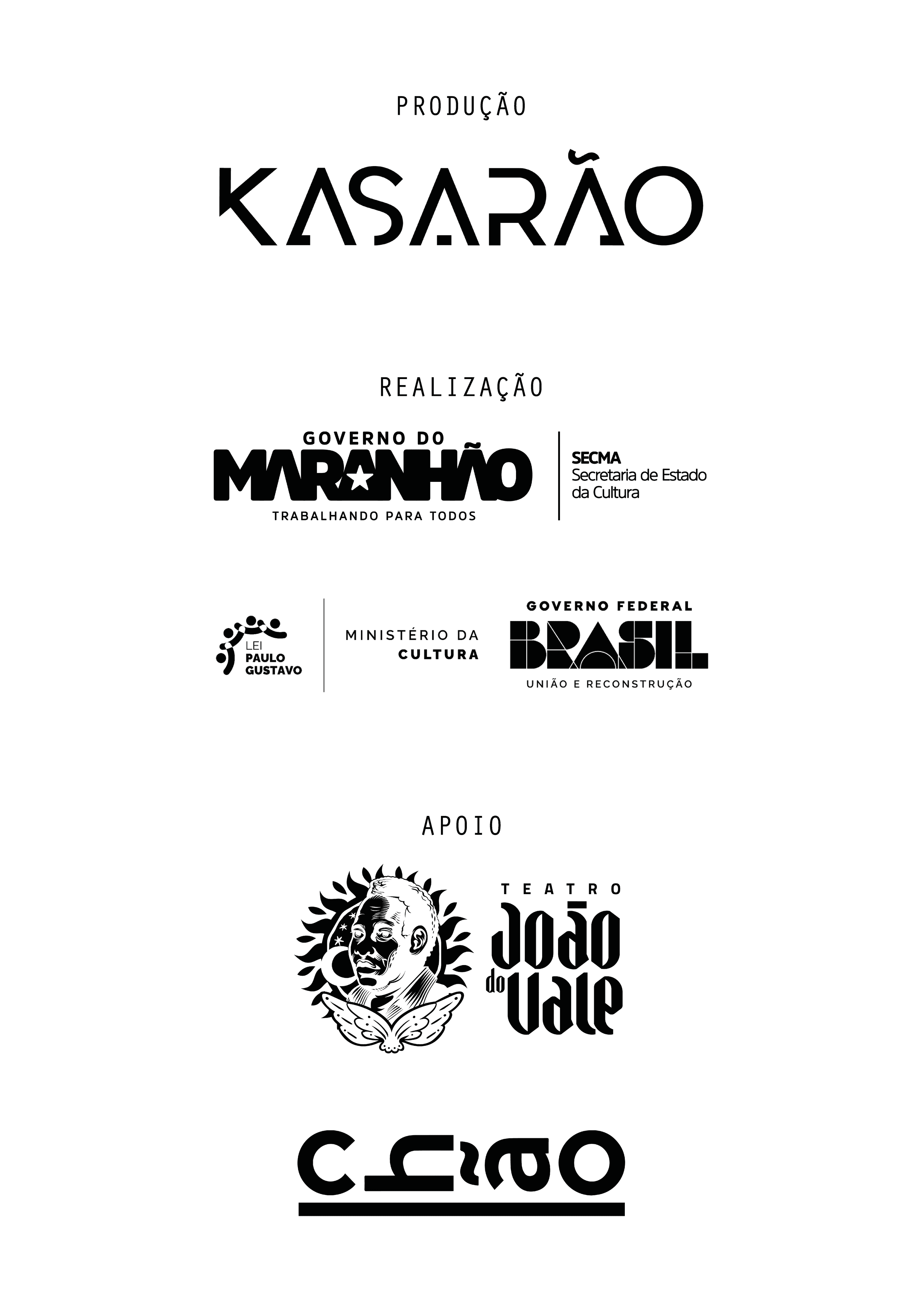 Projeto aprovado no Edital n°18/2024 - UGADC/SECMA, em São Luís - MA com produção de Kasarão Filmes, realização do Governo do Maranhão, Ministério da Cultura, Governo Federal e apoio de Teatro João do Vale e Chão SLZ.